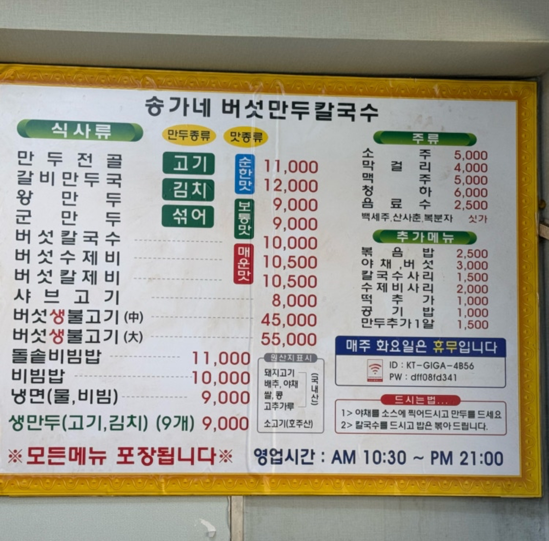 - 🍜 대표 메뉴: 버섯만두 칼국수, 만두전골, 버섯칼국수